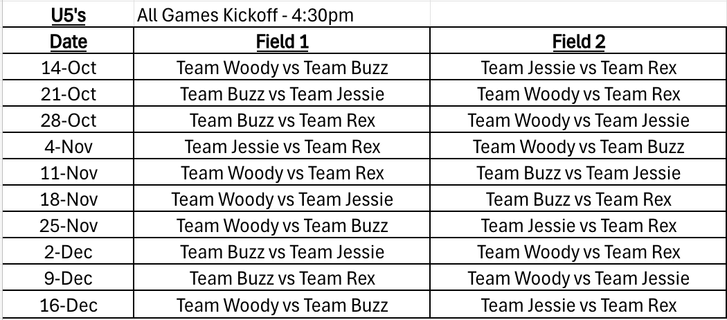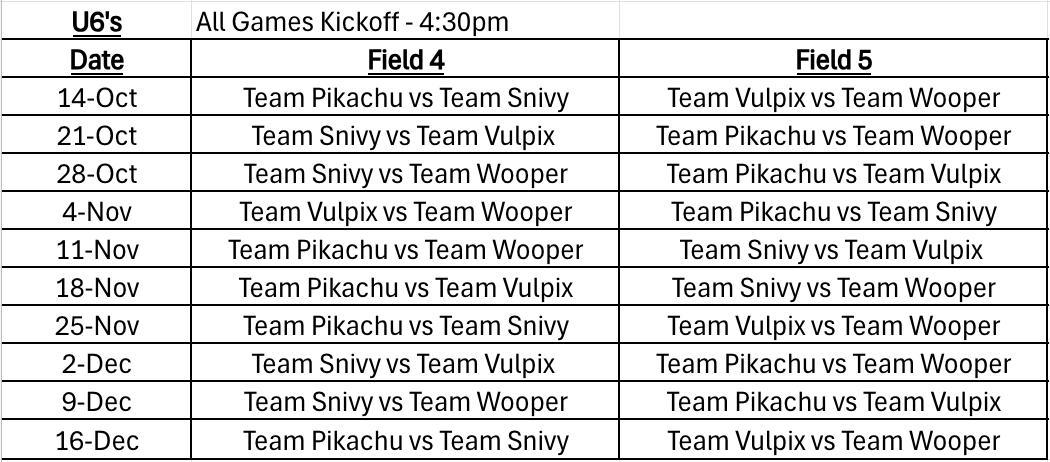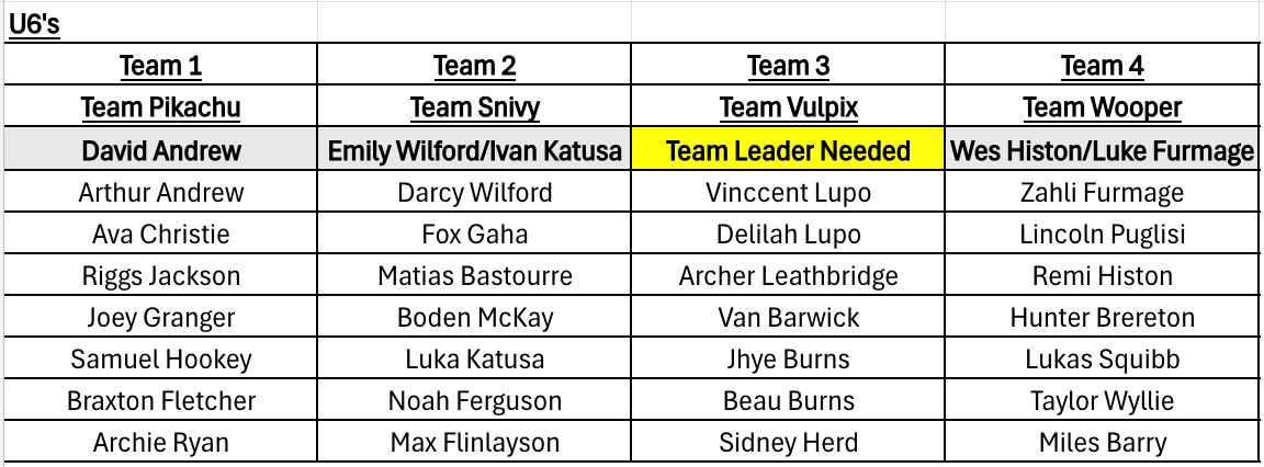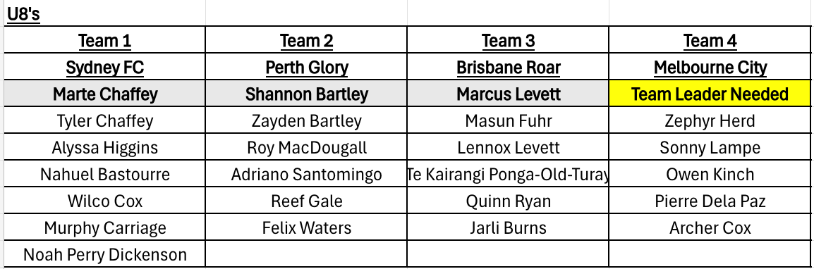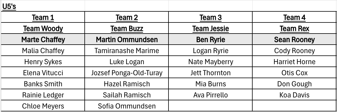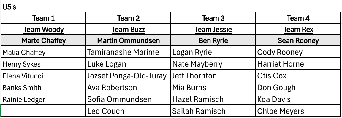 The Minis Summer Soccer Sub-Committee have selected teams to create an even competition. This is a fun, social competition and therefore scores will not be recorded and no table will be kept. Players are swapped between teams on the day as necessary to ensure even team numbers.